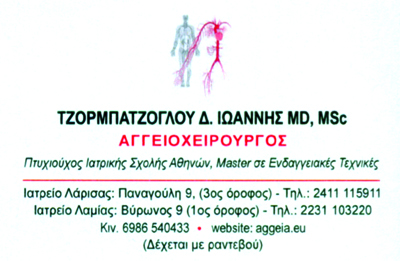 customer tabsΕπικοινωνίαMaster σε ενδοαγγειακές τεχνικέςΈλκη - οιδήματα άκρων - κιρσοί - ευρυαγγείεςΕιδικοί στις σύγχρονες επεμβατικές μεθόδους και θεραπείεςΔέχεται καθημερινά με ραντεβού.Δωρεάν online εκτιμηση : www.aggeia.euΑγγειοχειρούργοιΥγείαΕρυθρού Σταυρού 9, Λάρισα 2411115911 6986540433info@aggeia.euwww.aggeia.euaggeia.eu Το προτείνω (έχει προταθεί 0 φορές) ΦωτογραφίεςFacebook LikeShare on FacebookTweet Widget